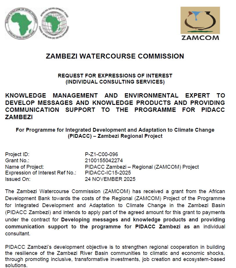 For complete EOI - Multinational - Developing Messages & Knowledge Products - PIDACC Zambezi, DOWNLOAD HERE: